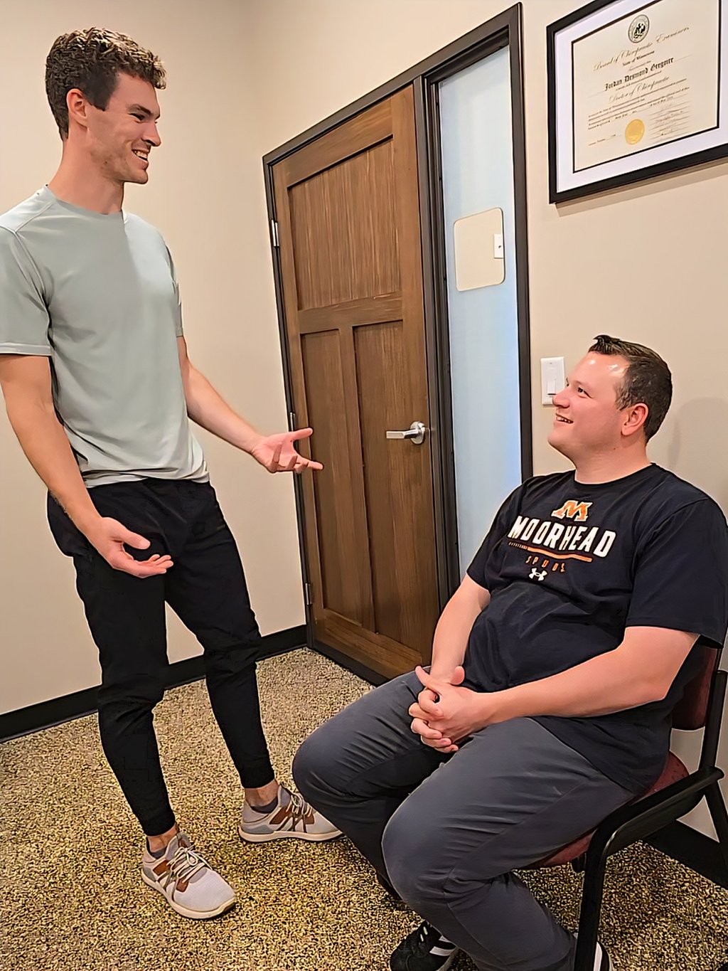 You're not just a patient here. You're a teammate in the process. We will help you understand your body, make sense of whats going on, and take active steps together to make lasting change. Our goal is to guide and empower you - from pain relief, to improved movement, to conquering whatever life throws at you next.
